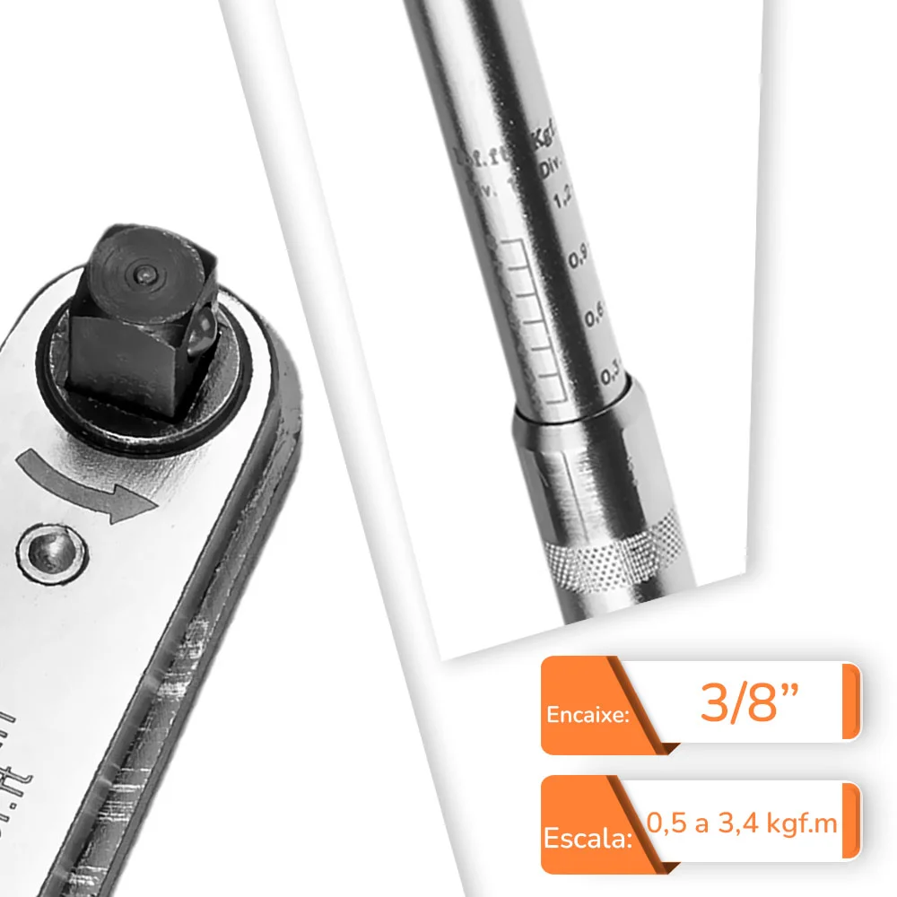 Torquímetro de Estalo de 0,50 a 3,40 Kgf.m com Encaixe de 3/8 Pol. - RAVEN-100200